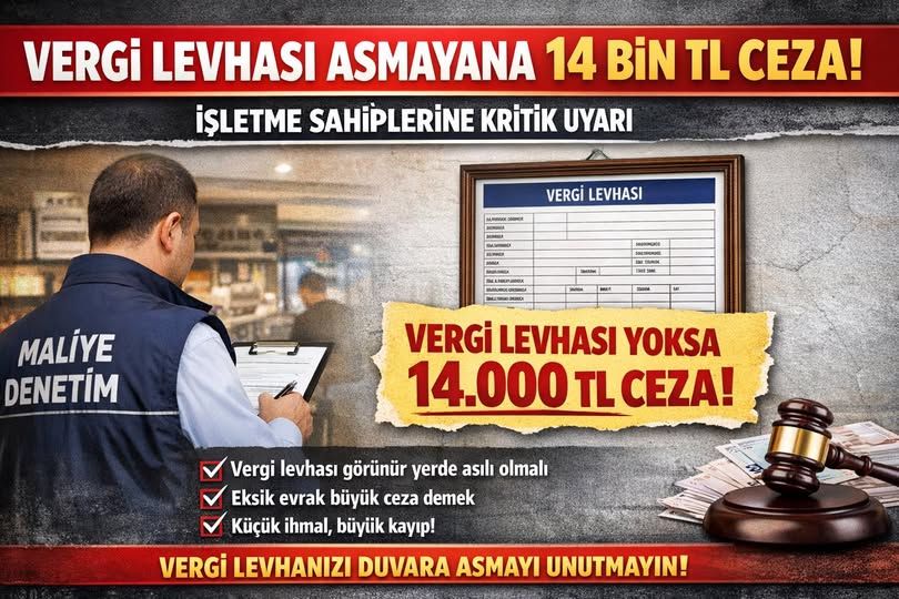Yetkililer, küçük bir ihmalin büyük cezalarla sonuçlanabileceğine dikkat çekerek, işletme sahiplerine “Vergi levhanızı mutlaka görünür bir yere asın” uyarısında bulundu.